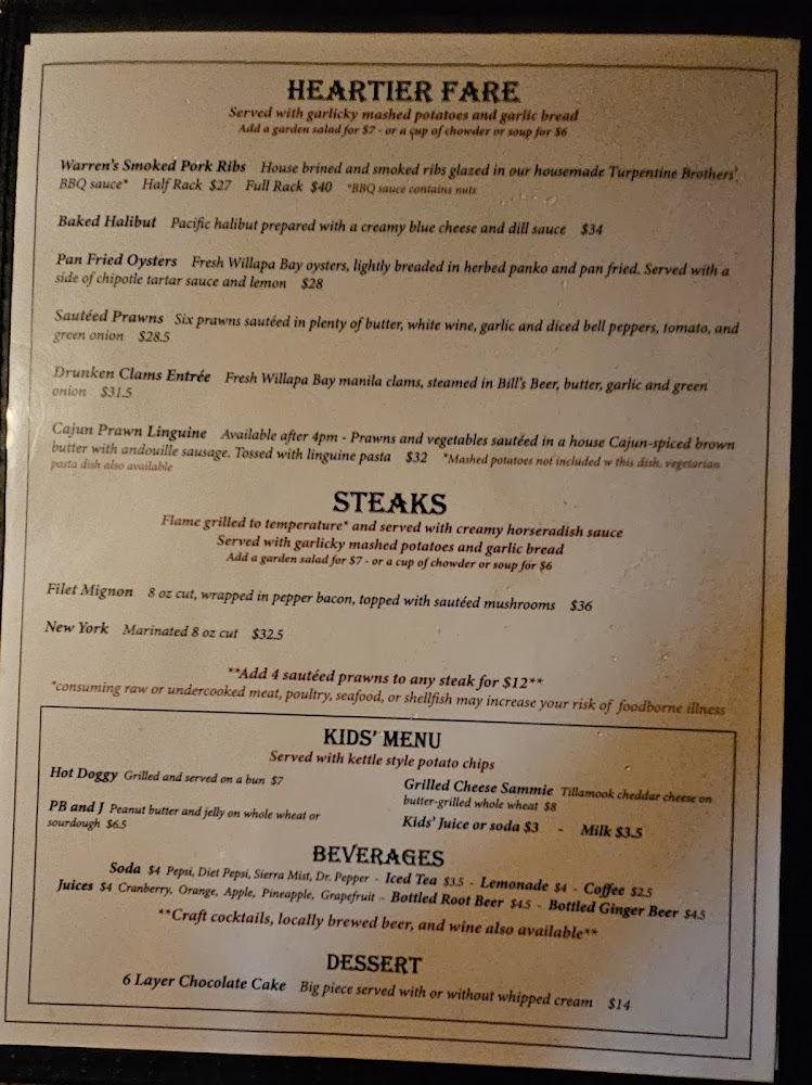 Welcome to Warren House Pub, your go-to spot for locally sourced pub fare and refreshing drinks in charming Cannon Beach. Enjoy a cozy atmosphere complete with a stone fireplace, a pool table, and inviting outdoor seating. Savor our exceptional cocktails and extensive beer selection while indulging in delicious dishes like nachos and Greek salad. Ideal for solo diners, groups, and tourists alike, our friendly service and laid-back ambiance make for the perfect dining experience. Plus, with accessible facilities and ample free parking, everyone can enjoy what we have to offer. Visit us today for a memorable meal!